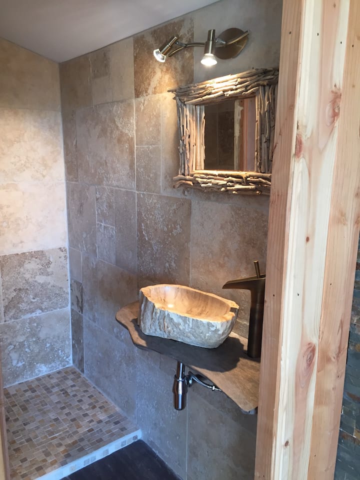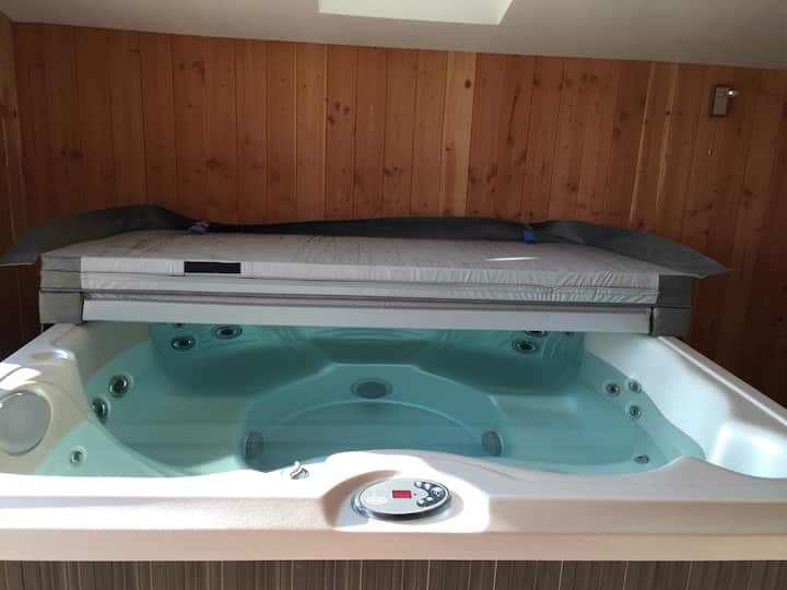 Chalet yenye beseni la maji moto la ndani