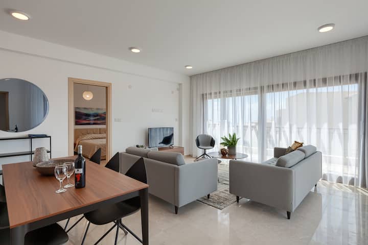 AL21 ni Fleti nzuri ya Huduma ya Premium yenye vyumba 2 vya kulala iliyo kwenye jengo la Alexander Heights la Risoti ya Aphrodite Hills. Kwa kuwa nyongeza ya hivi karibuni kwenye mradi mpya wa Alexander Heights, fleti hii inatoa anasa ya hali ya juu na iko katikati ya hatua chache tu kutoka kwenye Uwanja wa Kijiji wa Risoti na vifaa na vistawishi vyote.