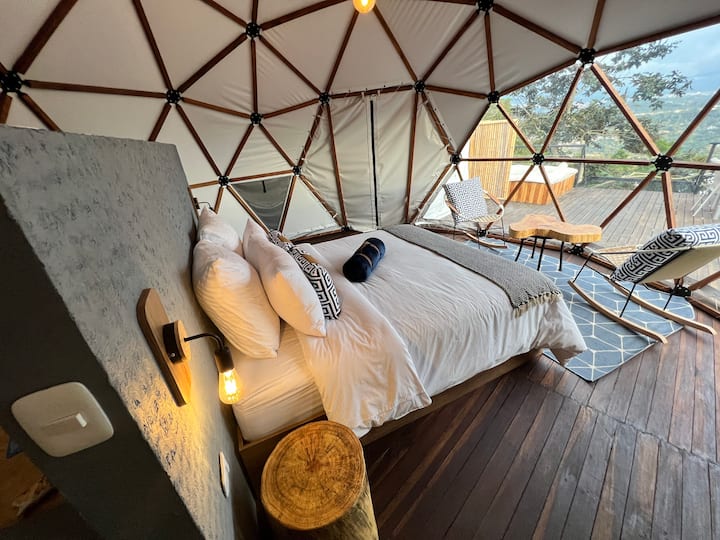 Sahau wasiwasi na ufurahie sehemu tulivu iliyozungukwa na mandhari ya kupendeza. Makuba yetu yenye nafasi kubwa yamebuniwa kwa uangalifu ili kukupa starehe isiyo na kifani, katika kambi yetu ya kipekee. Iko Silvania, Cundinamarca, dakika 60 tu kutoka Bogotá