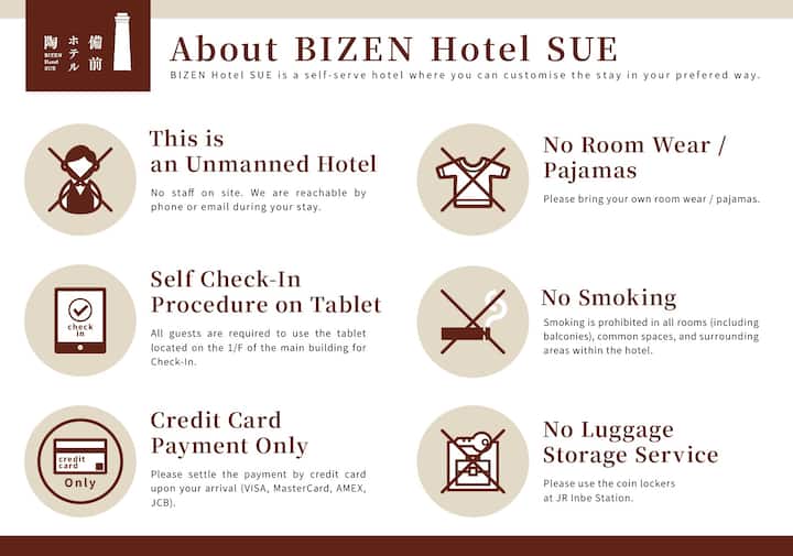 Bizen Hotel Sue ni hoteli iliyotengenezwa mwaka 2023 katikati ya eneo la Ibe, Mkoa wa Okayama, ambapo utamaduni wa Bizenyaki umejikita.