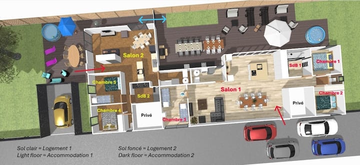Chumba cha 3 cha kulala = vitanda 2 x 2 90x200 vya ghorofa (hulala 4)