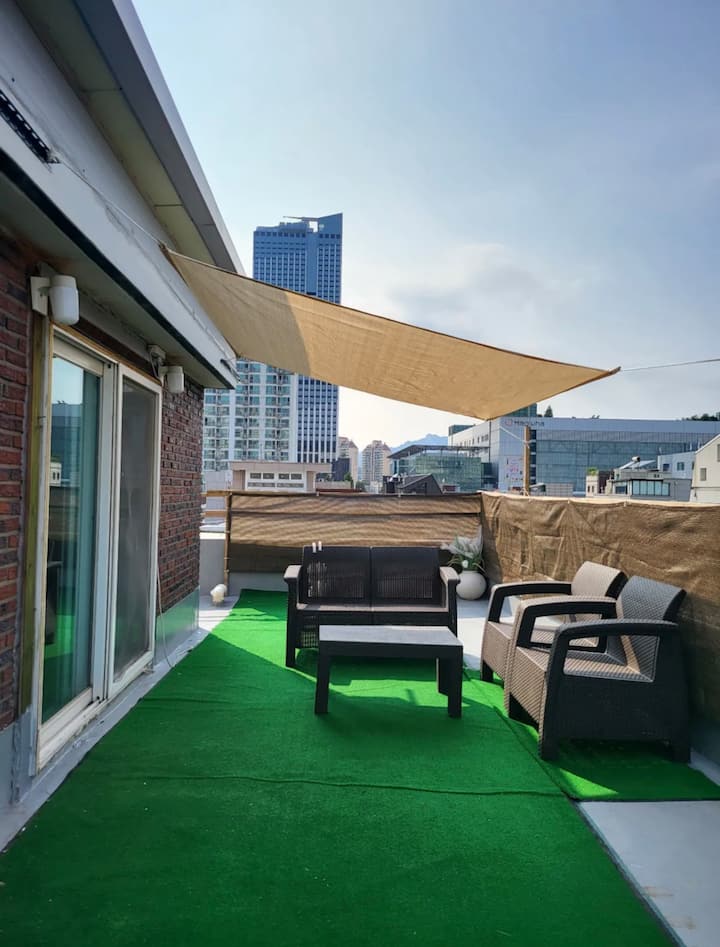 Paa: chumba kikubwa + yadi + choo cha kibinafsi, paa/rafiki wa mbwa/Kukaa muda mrefu/dakika 5 kwa treni ya chini/dakika 1 kwa basi