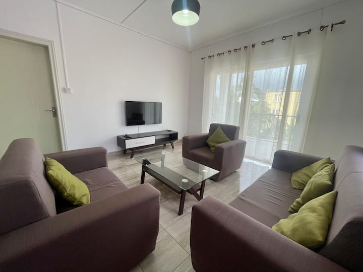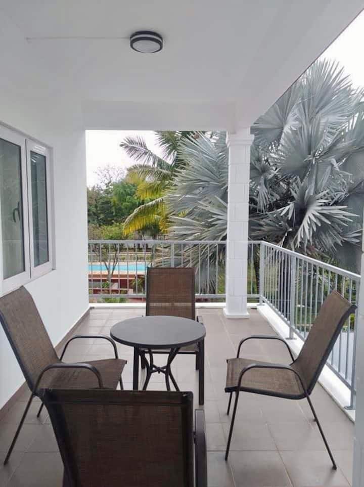 Fleti yenye starehe yenye bwawa dakika 2 kutoka ufukweni