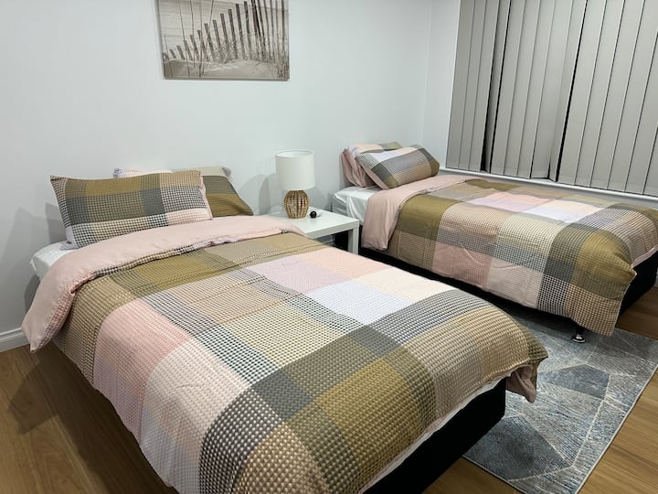 Likizo yetu ya kisasa ya familia hutoa nafasi kwa hadi wageni 8, ikiwa na vyumba 5 vya kulala vyenye samani maridadi na mabafu 3 ya kifahari, kuhakikisha ukaaji wa kufurahisha kwa familia, marafiki, au wasafiri wa kikazi. Vyumba 2 vya kulala vinafaa.