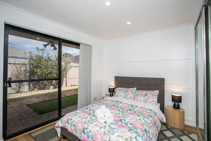 Ua wetu wa nyuma wa kujitegemea ni sehemu nzuri ya kufurahia mwangaza wa jua wa Perth. Pumzika kwenye baraza lenye nafasi kubwa, furahia chakula cha nje, au waache watoto wacheze kwenye bustani yenye utulivu. Ni makao yako binafsi kwa ajili ya mapumziko.