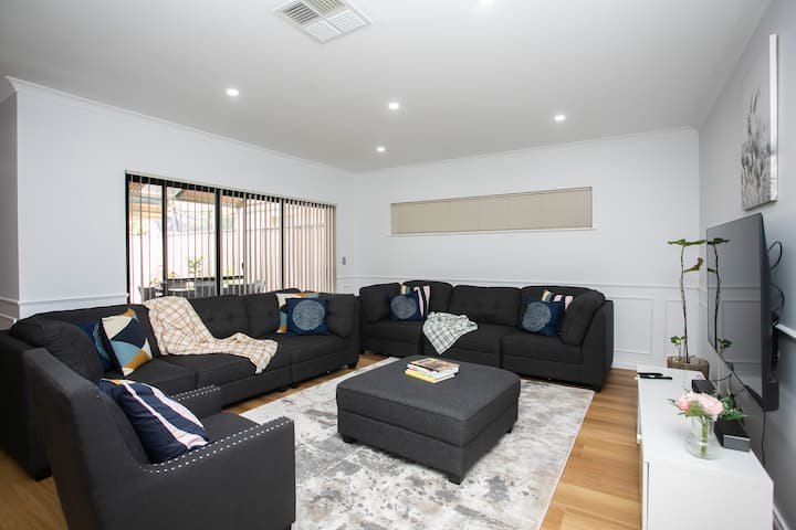 Ingia ndani na ufurahie sehemu iliyoundwa kwa uangalifu, ya kisasa ambayo inachanganya urembo maridadi wa kisasa na joto la nyumba. Sehemu ya kuishi iliyo wazi ni bora kwa ajili ya kupumzika au kushirikiana, ikiwa na viti vya kifahari, televisheni kubwa yenye skrini bapa na Netflix-ideal kwa ajili ya kupumzika baada ya siku nzima ya kuchunguza Perth.