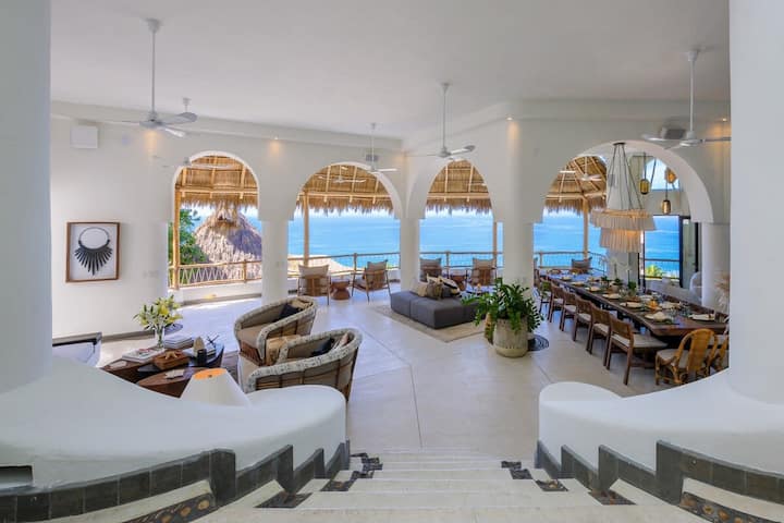 The Grand Sal, kitovu cha casa, ni Sebule kubwa yenye viti anuwai kwa wageni zaidi ya 40, ikijivunia mandhari ya kupendeza ya Banderas Bay na Puerto Vallarta. Ubunifu wake wa uzingativu unaruhusu starehe, mapumziko ya wakati mmoja katika maeneo mengi yenye starehe bila kuhisi msongamano mkubwa.