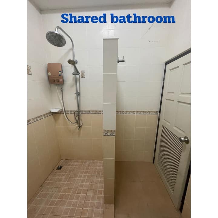 Bafu la pamoja la chumba kidogo cha kitanda kimoja
