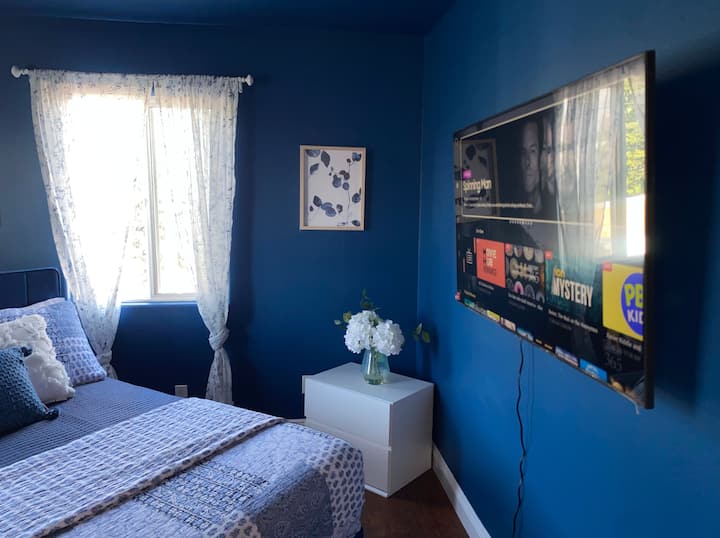 Nyumba ina vyumba 5 vya kulala. Kila chumba cha kulala kinakuja na kitanda cha ukubwa wa Malkia na Televisheni ya Smart.