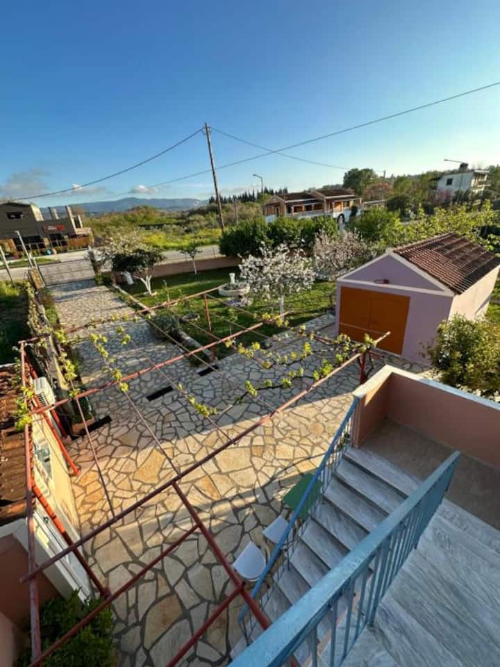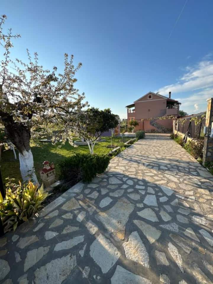 Nyumba hii iko karibu mita 1,400 mbali na RODA CORFU. Ni bora kwa familia na marafiki. Imezungukwa na mazingira ya asili na ina mwonekano mzuri wa milima. Tunafaa wanyama vipenzi.
