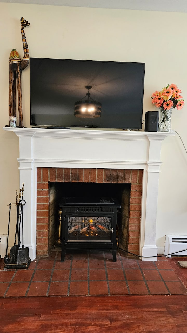 Kwa joto la ziada, au mazingira tu, furahia Jiko zuri la Mbao la Umeme, weka meko katika Eneo la Kuishi na Kula la Chumba Kikubwa.