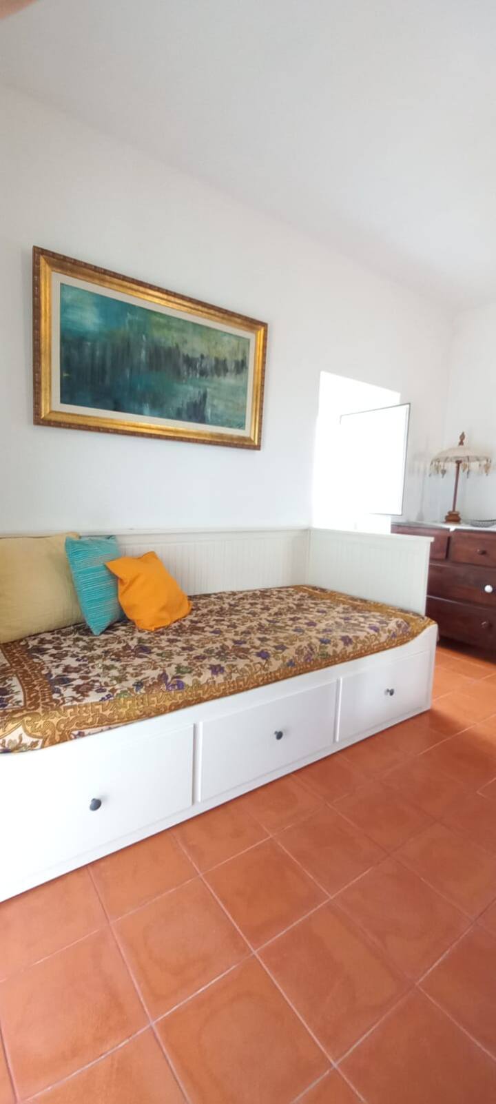 Chumba cha watu watatu (vitanda 3 vya mtu mmoja na uwezekano wa kuwa 1 mara mbili + 1 moja) na sebuleni kitanda cha sofa mara mbili. Bafu.