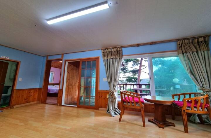 Pensheni aina ya nyumba isiyo na ghorofa katika msitu wa kupendeza wa Hanwha ni pensheni inayoepuka dhana ya kondo ya Rizon au risoti.