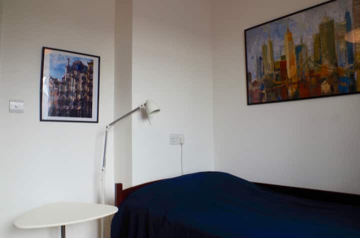 Chumba chenye starehe kwenye fleti angavu ya vyumba 2 karibu na treni ya chini ya ardhi
