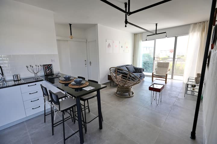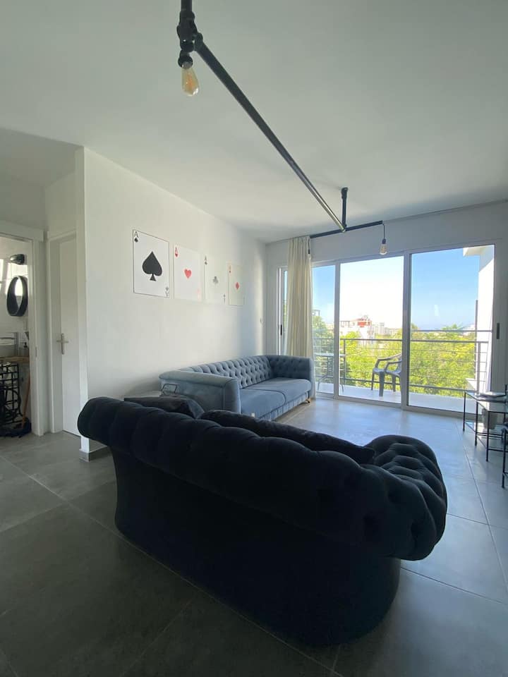 Nyumba yako ya mbali na ya nyumbani. Kukukaribisha kwa hali ya hewa ya Kupro, "Zefiros" iko tayari kukushangaza kwa mandhari ya milima ya Kyrenia pamoja na bahari ya kuvutia ya Kyrenia. "Zefiros" ni nyumba yenye mandhari ya viwandani na kasino, fanicha na mapambo yamehamasishwa na enzi ya viwandani na uzuri wa urahisi na uchache. Tunakualika kwenye nyumba ambayo itatimiza mahitaji yako yote na inazidi matarajio yako yote. Nyumba hii kama paradiso ina chumba 1 kikuu cha kulala, chumba 1 cha watu wawili pamoja na mtaro mzuri wa paa la kujitegemea na roshani kubwa yenye mwonekano wa kipekee wa milima ya Kyrenia na bahari safi ya bluu, kuhakikisha starehe yako bora wakati wa ukaaji wako.. Pamoja na eneo lake kuu, fukwe, Kasino, baa, maduka makubwa, mikahawa na huduma za basi zote ziko umbali mfupi wa kutembea. Utakaa ndani ya dakika 5 kutembea kutoka kwenye fukwe nzuri za Kyrenia, ndani ya dakika 5 kutembea kutoka kwenye jengo kubwa zaidi la Kasino la Kupro na ndani ya dakika 5 kwa gari kutoka Hifadhi ya Taifa ya Alsancak. Kwa kuwa nyumba yako itakuwa katika umbali rahisi sana kutoka mlima na bahari, utaweza kushiriki katika shughuli za kutafuta msisimko kama vile kutembea kwa miguu, michezo ya majini, parasailing, na vituo vya kupiga mbizi. Huduma za basi zinazoendeshwa karibu sana zitakuruhusu kupata tiba ya rejareja katikati ya jiji la Kyrenia. Wakati uko hapo unaweza pia kuanza historia tajiri ya Kyrenia kwenye safari zinazopatikana za kitamaduni. Ukikaa nasi, utaweza kupata uzoefu wa kila kitu cha Kupro na kadhalika!