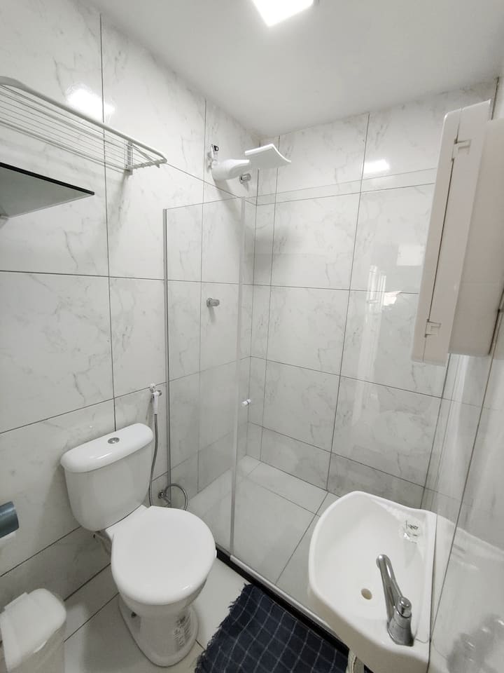 Inafaa kwa wale wanaotafuta vitendo, starehe na eneo la upendeleo. Jengo la kujitegemea, liko dakika 2 – 3 kutembea kutoka Hifadhi ya Ununuzi ya Bahia, ambapo Hifadhi ya Michezo ya Kichawi (bora kwa burudani ya watoto) na Arenas Evo, ambayo ni jengo kubwa zaidi la michezo ndani ya duka la ununuzi nchini.