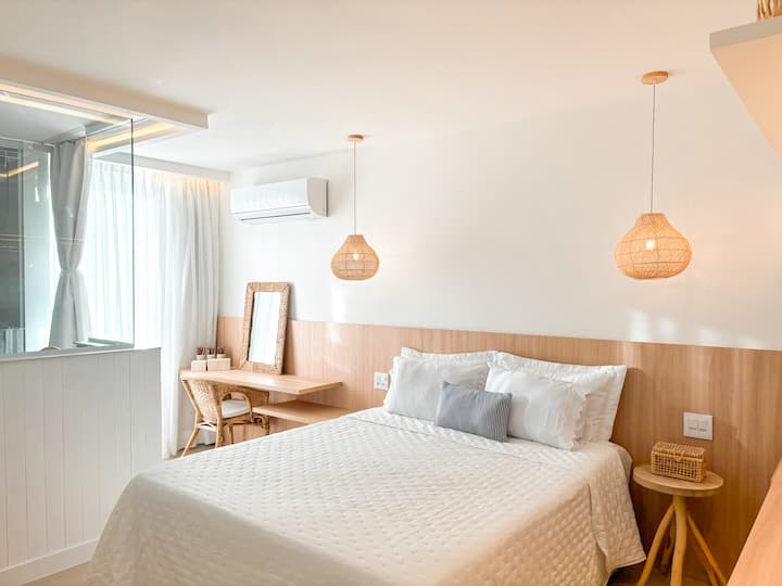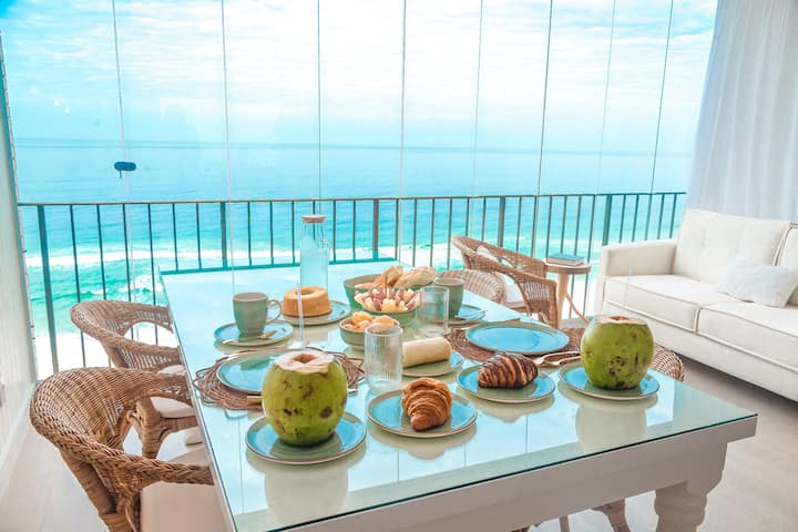 Fleti ya mbele ya ufukwe ya paradiso yenye mandhari ya ajabu ya bahari na ziwa, katika ufukwe bora wa Rio. Vyumba viwili vya mtindo wa spa vyenye televisheni janja 50". Sebule yenye televisheni janja ya 65"iliyojumuishwa na kisiwa cha jikoni. Ina vifaa kamili na kila kitu unachoweza kuhitaji, A/C katika kila chumba na Wi-Fi ya kasi. Usimamizi wa kitaalamu uko tayari kukusaidia. Kondo ya kifahari iliyo na bwawa, ukumbi wa mazoezi wa mwonekano wa bahari, mapokezi na ulinzi wa saa 24, eneo la watoto, mkahawa wa talian..Dakika chache tu kutoka kwenye barabara zote kuu na maduka makubwa. Karibu kwenye eneo lako!