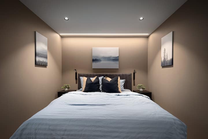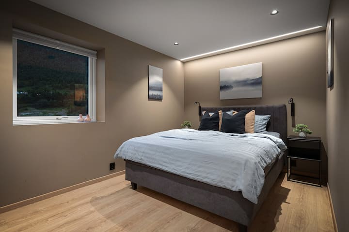 Mahali pazuri kwa ajili ya kuteleza kwenye theluji, kutembea milimani na kutazama mandhari. Dakika 5 tu kutoka katikati ya jiji, karibu na maduka, mikahawa na Sognefjord. Wi-Fi ya bila malipo, maegesho, mashuka na taulo zimejumuishwa. Weka nafasi ya sehemu yako ya kukaa huko Sogndal maridadi sasa!