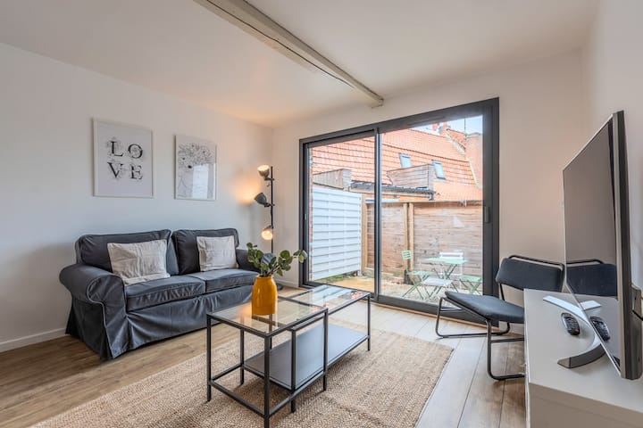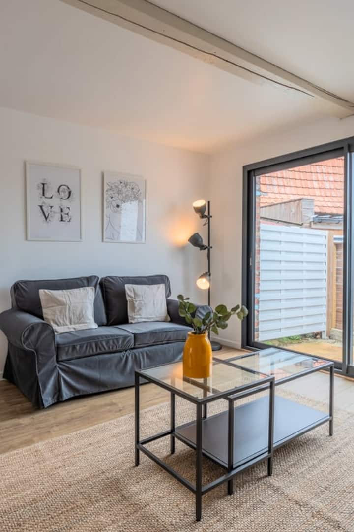 Maisonette ya vyumba 2 vya kulala iliyo na ua, karibu na tramu