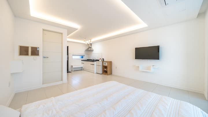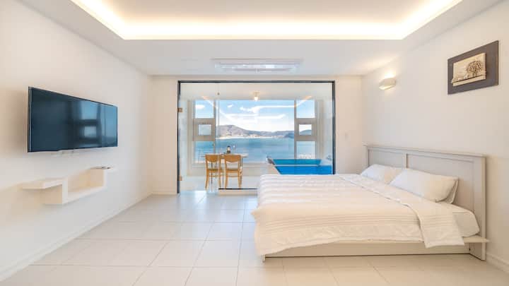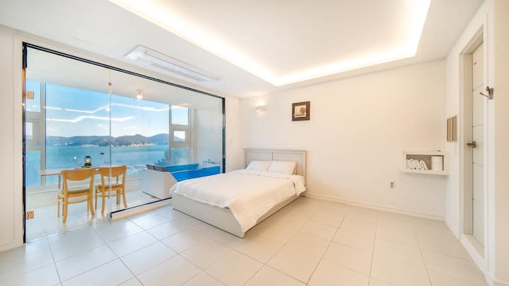 Ni pensheni yenye Mwonekano mzuri wa Bahari ya Bahari ya Geoje. Furahia spa yenye mwonekano wa bahari na bwawa la kuogelea la kujitegemea.