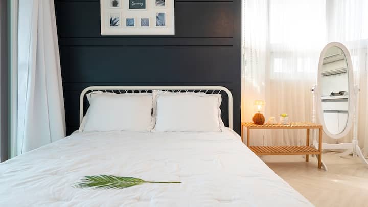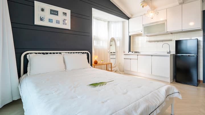 Aina ya studio, chumba cha kulala (kitanda 1 cha malkia) + jiko 1 + choo 1 + jiko la nyama choma la kibinafsi