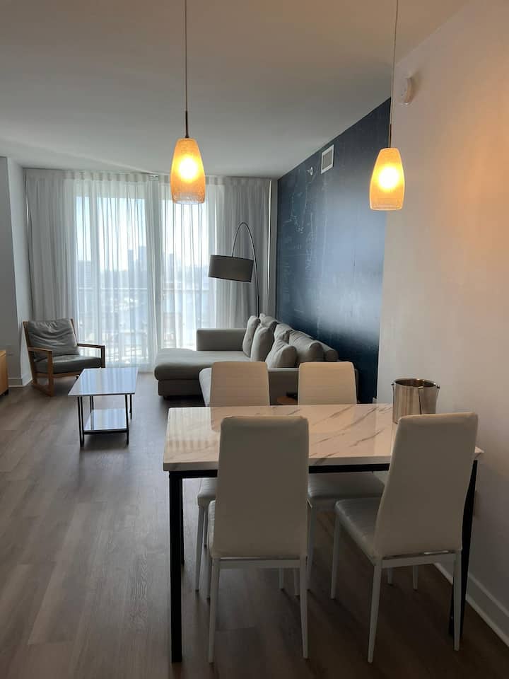 Ina roshani kubwa yenye viti vinavyokualika ufurahie ukaaji wako huko Miami.