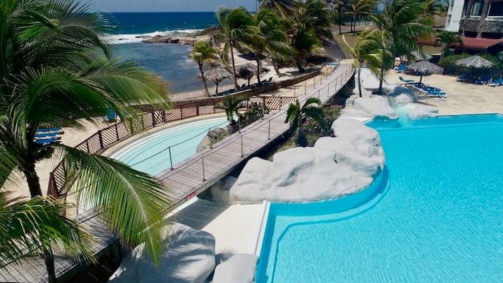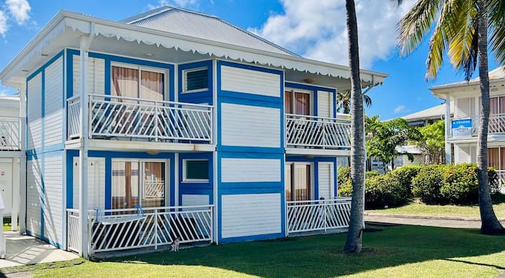 Fleti iko katika eneo zuri huko Saint François, katika mazingira mazuri sana. Inaweza kupatikana katika bustani ya kitropiki ya Hoteli ya Manganao.