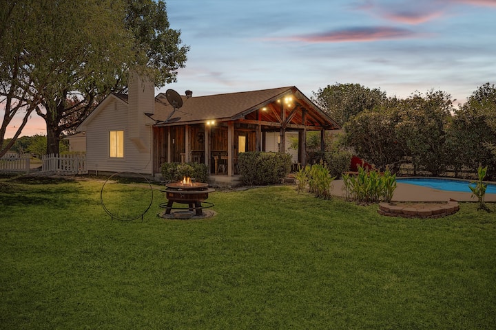 Salimia oasis yako ya nchi! Bwawa la kuogelea la nje ni raha ya kuburudisha na kipande kidogo cha paradiso. Pumua katika hewa safi ya mashambani unapofurahia chakula kwenye sehemu ya nje ya baraza iliyofunikwa. Baadaye jioni, kaa mchangamfu na mwenye starehe karibu na kitanda cha moto unapofurahia kutazama nyota chini ya makundi ya nyota.