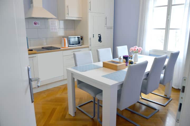 ★Kutoka kwenye chumba cha kulia chakula kuna njia ya kuingia kwenye roshani, ambapo unaweza kupumzika na kufurahia mandhari nzuri kwenye mto wa Ljubljanica na Castle Hill (Ljubljanski grad).