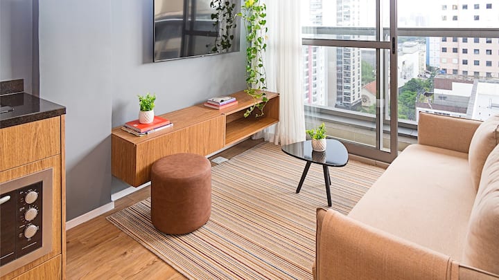 Kitanda cha Ap w/ sofa na Sehemu ya Maegesho Jd. Paulista 39M²