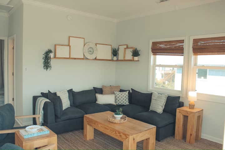 Furahia likizo ya pwani ya ndoto zako hapa kwenye moja na ya pekee ya Sempre Blu A. Likizo hii ya pwani ina uzuri wa hila huku ikitoa starehe na haiba ya nyumba. Kila inchi ya nyumba hii imepangwa na kila mwanachama wa familia yetu, inayoathiriwa na urithi wetu wa Sicily na kupendezwa na pwani ya Carolina. Wenyeji, Payton na Nuhu, waliunda sanaa binafsi zilizotengenezwa kwa mikono zinazoonyeshwa kwenye nyumba nzima ikiwa ni pamoja na michoro iliyotengenezwa kwa turubai na kupiga picha za maeneo tunayopenda ya eneo husika. Tuliamua kutengeneza kwa mkono sanaa zote na samani kadhaa kwa sababu kila kipande kinasimulia hadithi ya kipekee ambayo inaweza kuthaminiwa kwa vizazi vijavyo. Tunatumaini kwamba kila mgeni anafurahia kabisa likizo yetu ya pwani kama vile tulivyoiunda!