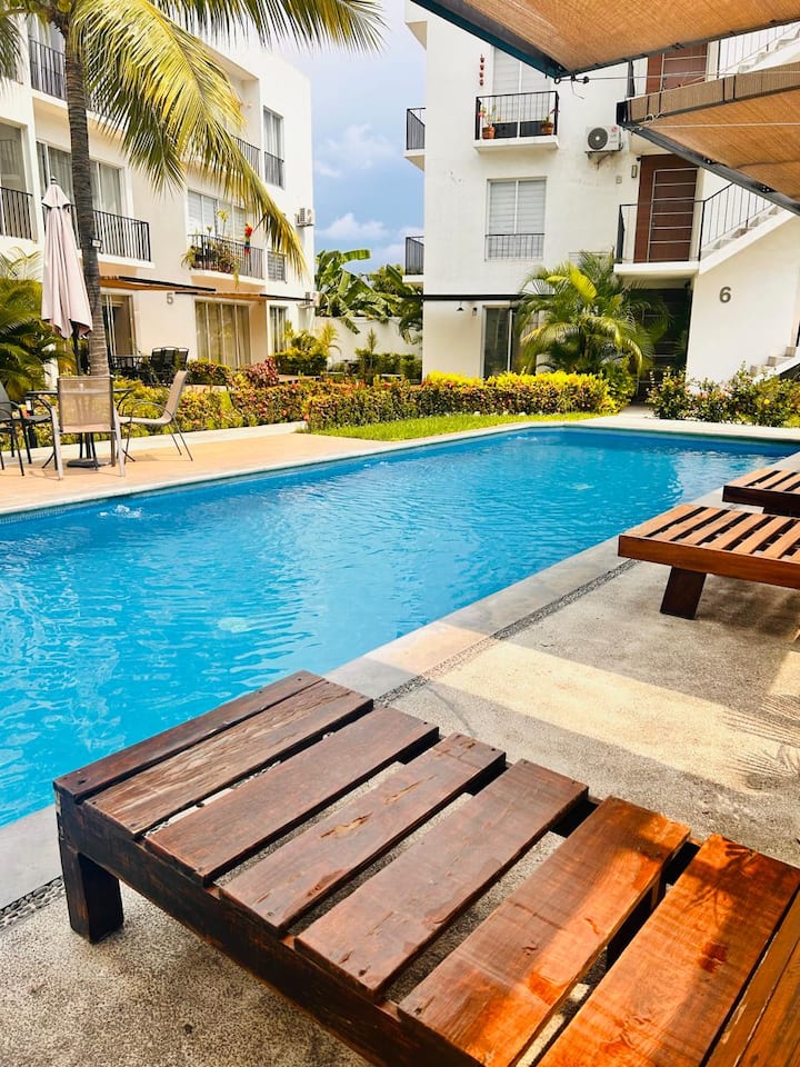 Fleti nzuri na bwawa karibu na ufukwe