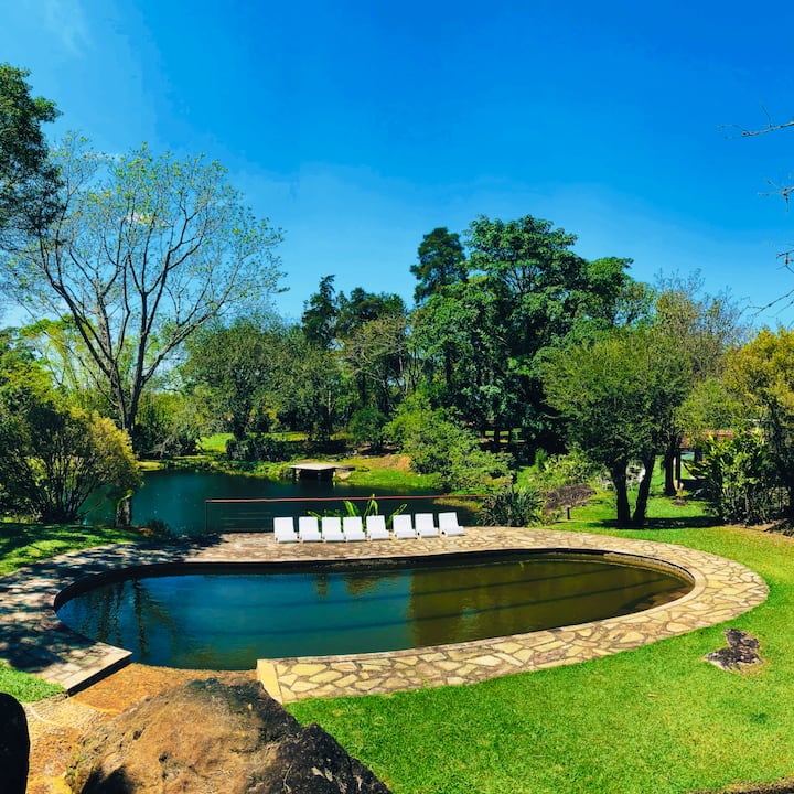 Chalé - Bwawa na Sauna katika Shamba la Permaculture