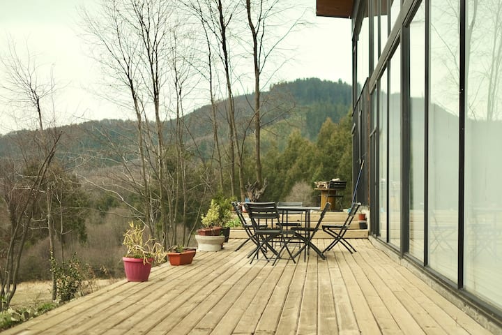 Chalet ya mlima, mandhari bora, ua
