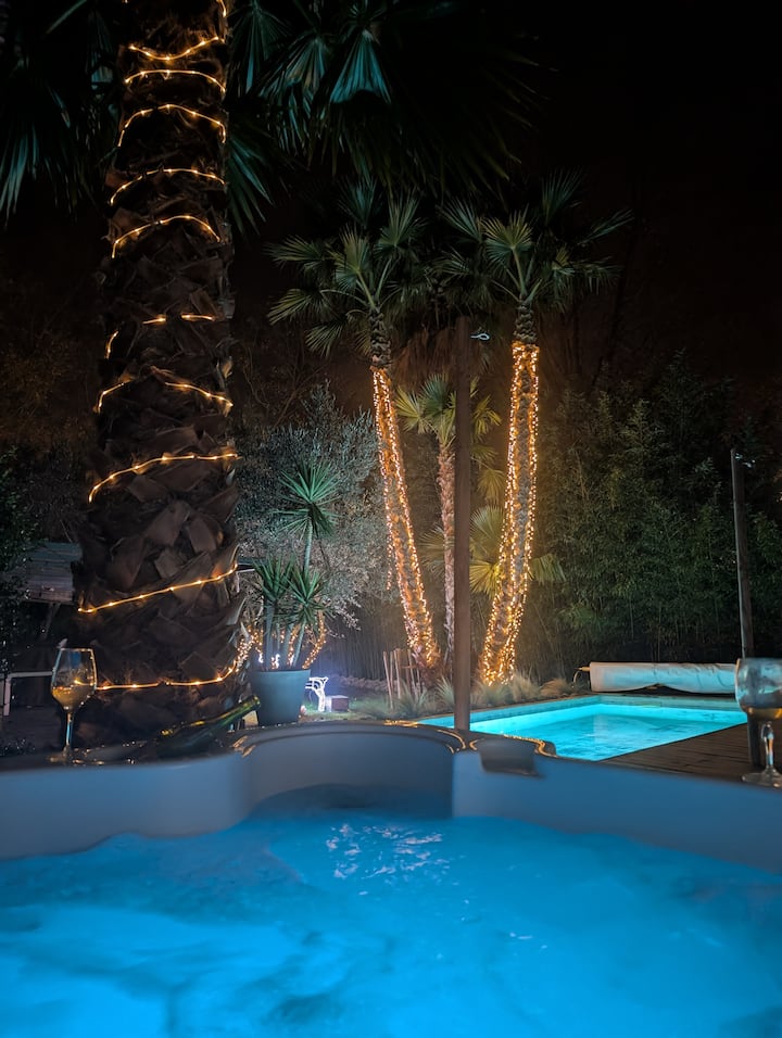 Kidokezi cha Olivette ni SPA ya watu 6 nje ambapo unaweza kufurahia nyakati za kupumzika chini ya anga lenye nyota.