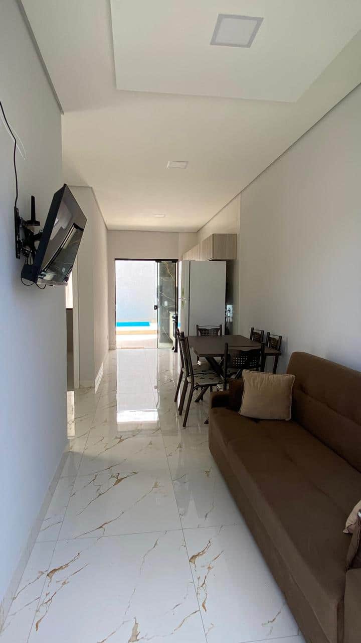 Nyumba ni ya kujitegemea kabisa, pana na ina hewa safi sana, ikitoa mazingira mazuri ya kupumzika na kupumzika. Sebule ina Televisheni mahiri ya inchi 32, yenye ufikiaji wa tovuti za utiririshaji kama vile Netflix, Amazon Prime, Globo Play, Disney+, miongoni mwa mengine (kumbuka kwamba hatutoi usajili, programu tu). Wi-Fi ya kasi ya juu (500MB ya nyuzi macho) inahakikisha kuwa umeunganishwa kila wakati, iwe ni kwa ajili ya kazi au burudani.