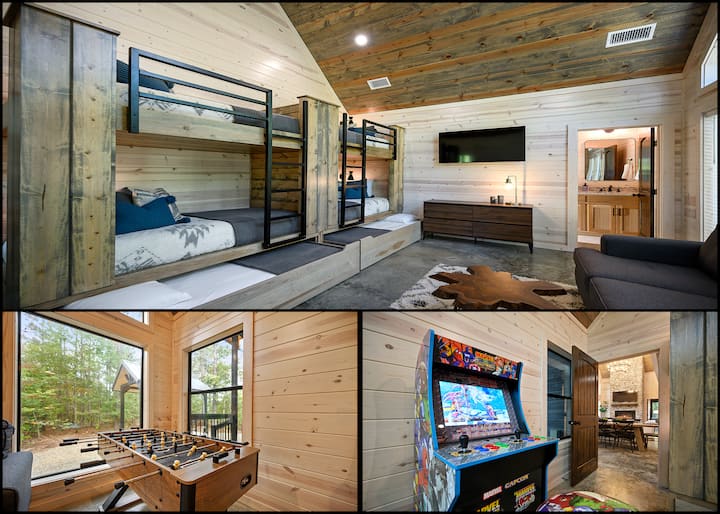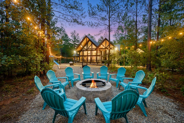 Kwa wale wanaopenda ushindani wa kirafiki, eneo la nje limejaa shughuli za kufurahisha, ikiwemo skuta ya kuchezea, ua wa Yahtzee, shimo la mahindi, viatu vya farasi na mpira wa bocce. Na hakuna likizo ya nyumba ya mbao iliyokamilika bila shimo la moto la mawe, ambapo unaweza kuchoma marshmallows, kusimulia hadithi, na kuunda kumbukumbu ambazo zitadumu maisha yote.