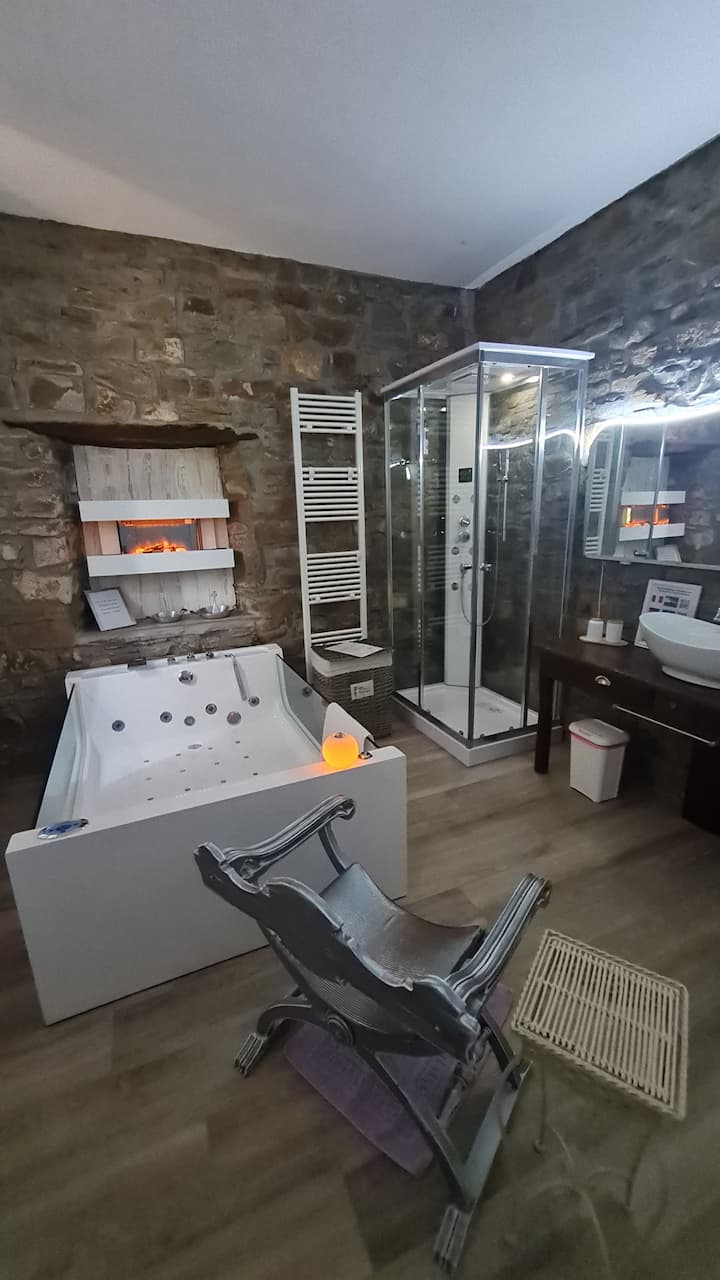 Ukaaji wa kimapenzi wa usiku kucha kwa wanandoa walio na beseni la maji moto