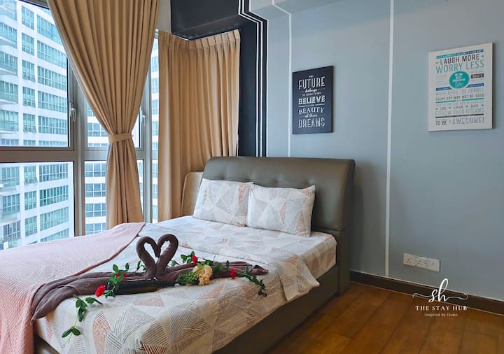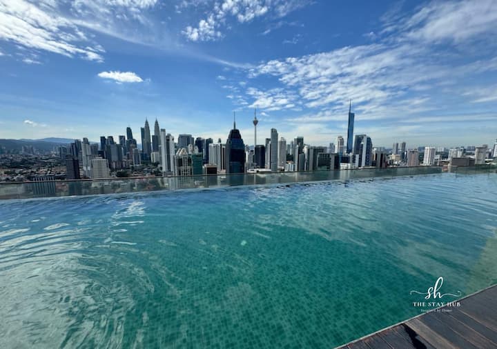 Pata mchanganyiko kamili wa starehe na mandhari ya kupendeza kwenye nyumba yetu, maarufu kwa bwawa lake lisilo na kikomo la paa linalotoa mandhari ya kupendeza ya anga ya Kuala Lumpur.