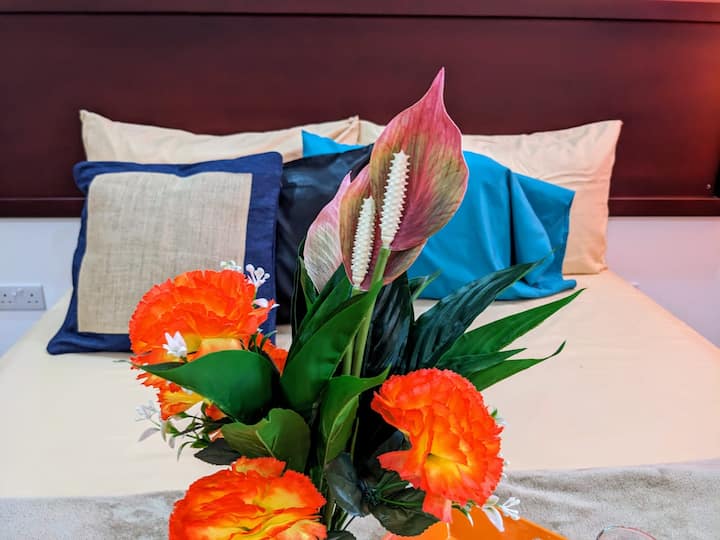 Sehemu hii ina bafu ambalo limeunganishwa na chumba chako.