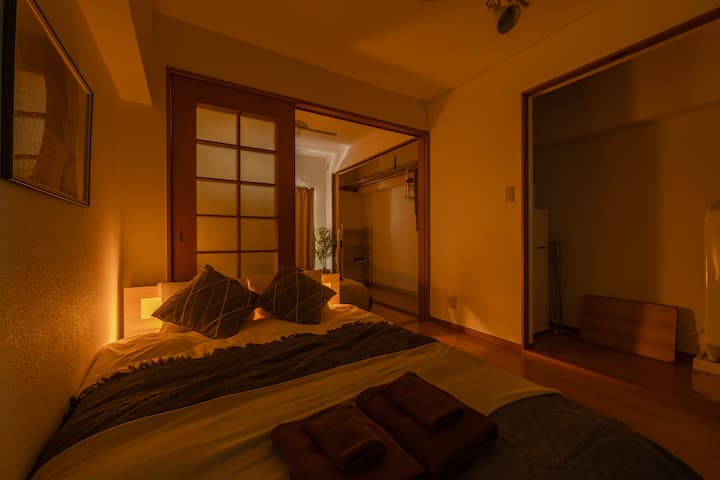 Chumba unachotoa ni safi na tutakupa usingizi bora zaidi wenye matandiko mahususi ya hoteli.Vyumba vya kulala vimetenganishwa na milango inayoteleza ili kuunda sehemu iliyo wazi huku ukidumisha faragha.Kwa kuongezea, chumba cha kulala cha nyuma kimejaa vitanda viwili na vya ukubwa mmoja na chumba cha kulala cha mbele kina kitanda cha ukubwa maradufu, kwa hivyo unaweza kusambaza idadi ya watu hata 3: 1 au 2: 2.