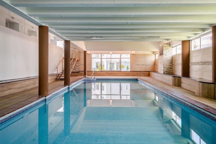 Mita kutoka ufukweni, zenye mandhari na bwawa lenye joto