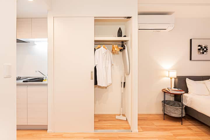 Sleek 1BD Fleti w/ TV katika Kikukawa-Shinjuku Line