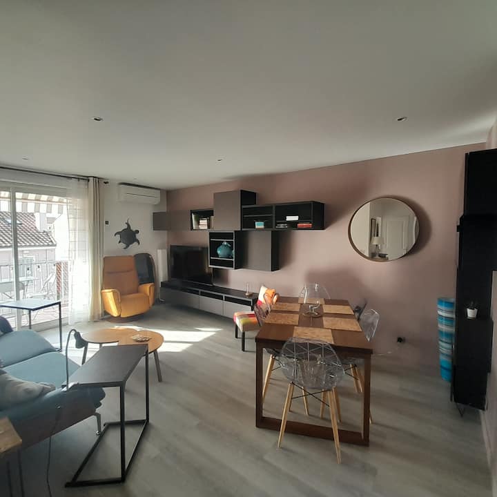 T4 ya Kifahari dakika 3 kutoka Baharini Maegesho Wifi ya Clims ya Balkoni