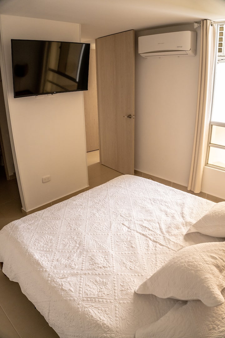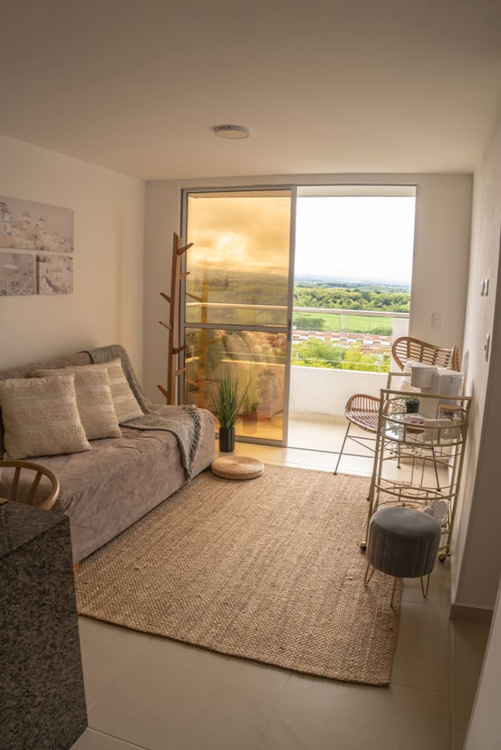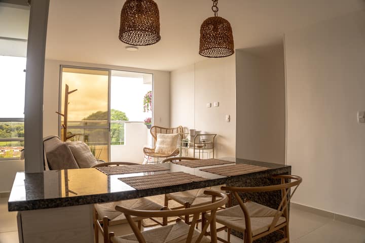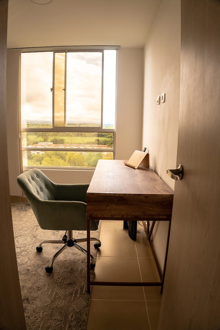 Karibu katika nyumba yako ya mbali na ya nyumbani. Sehemu hii iliyoundwa hivi karibuni kwa upendo, iliyoundwa kwa uangalifu inakupa starehe nadra za mtindo wa Marekani, kama vile mashine ya kuosha, mashine ya kukausha, A/C, magodoro ya matibabu na Wi-Fi ya kasi. Furahia mandhari ya milima, sehemu ya kufanyia kazi yenye starehe yenye mwanga wa asili, kituo cha kahawa na chai, jiko kamili, bwawa, ukumbi wa mazoezi, ulinzi wa saa 24 na maegesho makuu. Karibu na Ukumarí, Salento, Filandia na Cocora Valley-kila kitu unachohitaji ili ujisikie nyumbani huku ukifurahia eneo letu zuri.