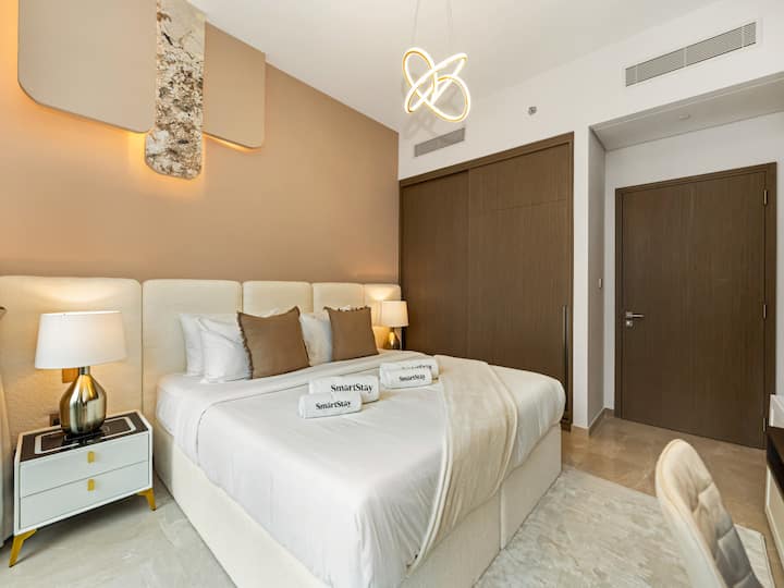 Karibu kwenye SmartStay, lango lako la maisha ya kifahari huko Dubai. Kama matarajio ya ukarimu wa hali ya juu, tunapanga uteuzi wa kipekee wa fleti za hali ya juu zilizo katika maeneo makuu, kama vile Burj Royale ya kifahari. Lengo letu? Ili kukupa uzoefu wa kuishi usio na kifani ulioboreshwa na maoni mazuri, vistawishi vya kifahari na kiolesura cha kidijitali kisicho na mshono. Isitoshe, timu yetu mahususi iko tayari kukusaidia kila wakati. Furahia SmartStay yako!