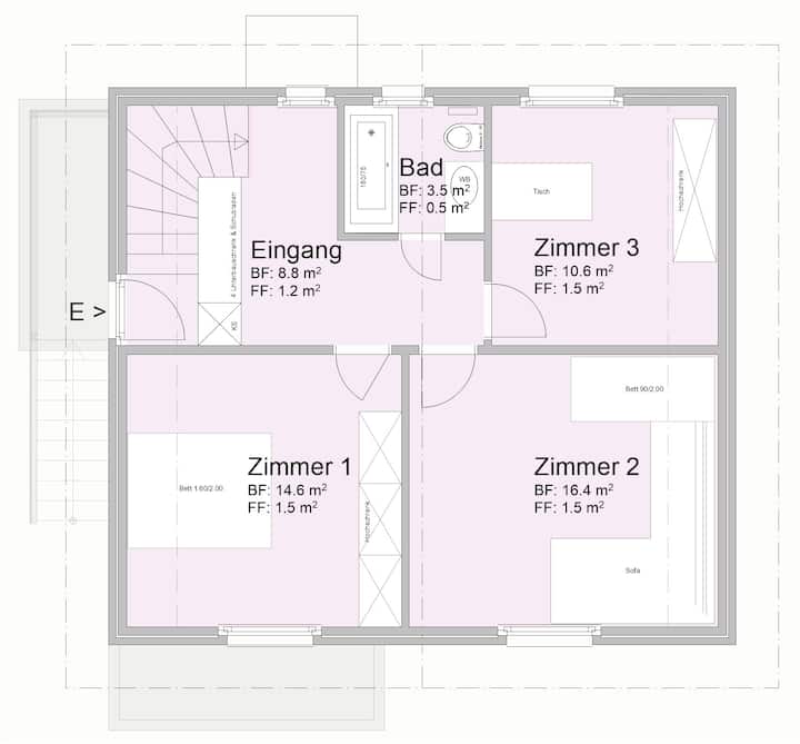 - vyumba 2 vya kulala