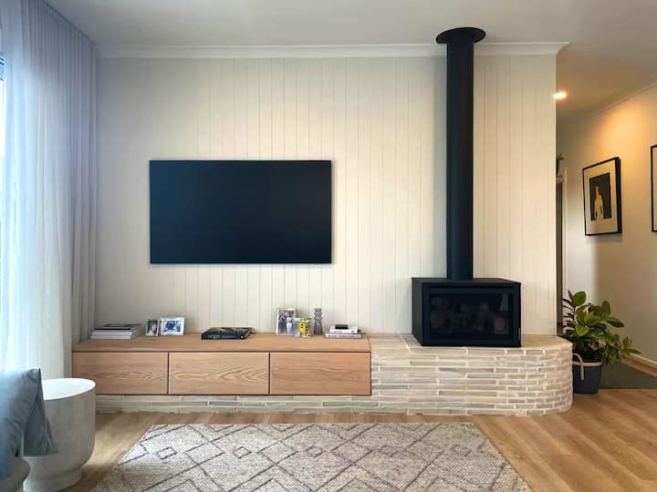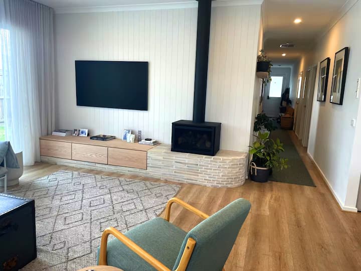 Malazi yanajumuisha ua lililofungwa kwa ajili ya watoto na wanyama vipenzi kucheza kwa usalama, eneo la kuchoma nyama lenye sebule ya kisasa ya nje, bwawa la kuogelea lenye joto na viti vya kupumzikia jua na kivuli cha mwavuli. Kuna mfumo wa kupasha joto na mahali pa kuota moto ya ndani (gesi), mfumo wa kupoza na feni za dari katika vyumba vyote vya kulala na eneo la alfresco, pamoja na vifaa vyote vya kisasa vinavyohitajika kwa ajili ya ukaaji wa starehe kutoka kwa huduma za kutazama mfululizo wa vipindi/vitengo vya filamu kupitia Netflix hadi Wi-Fi ya kasi ya juu ya NBN Aussie.