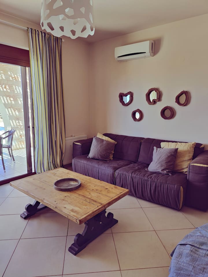 Sisi ni Krisztina na Michalis, wanaoishi katika kijiji cha kando ya bahari kinacholea watoto watatu. Tunapenda Krete.