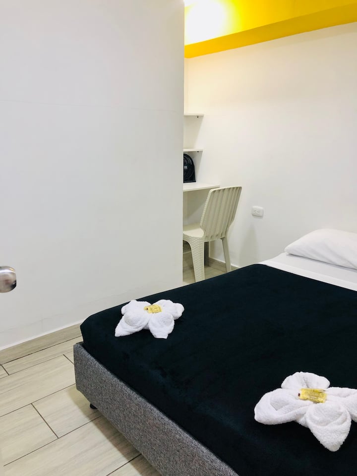 Ninakualika ujue hoteli karibu na katikati ya Armenia, Quindío ambapo starehe na utulivu uko katika sehemu moja. Rangi ya Hoteli ya Café iliunda mtindo wake kwa maelezo madogo, kila chumba kimebuniwa kwa kuzingatia eneo maarufu la Quindío, tumebuni uwakilishi rahisi lakini wa kuvutia wa fleti.